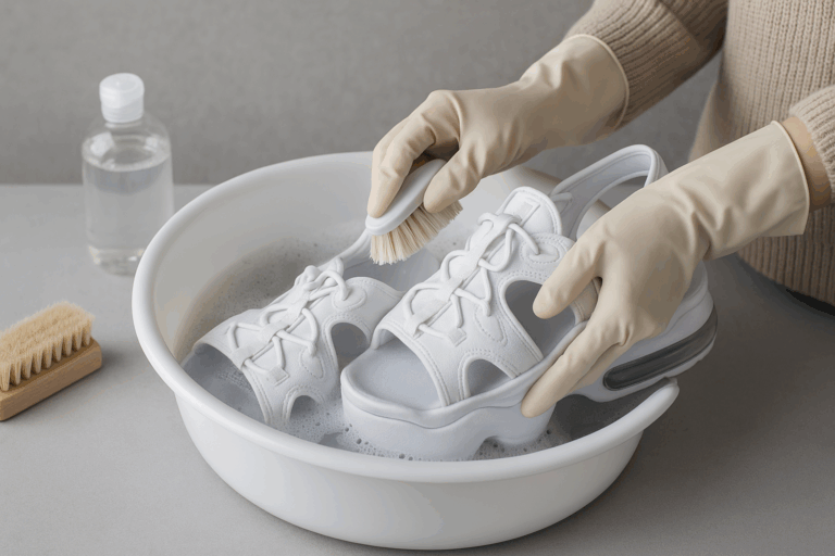 強アルカリ性や漂白剤入りの洗剤は、ソールの変色や素材の劣化を引き起こすため避けましょう。また、香料の強い洗剤は内部に残りやすいので、できるだけ無香料タイプを選ぶと安心です。