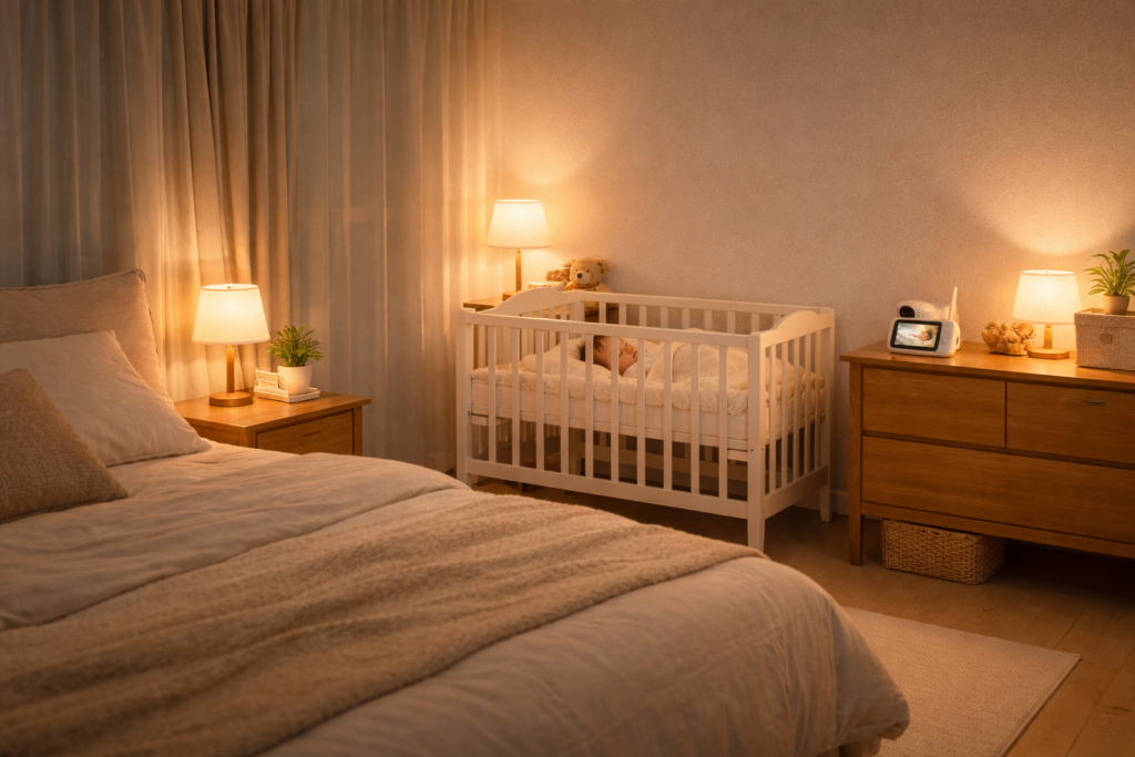 寝室におけるベビーモニターは、赤ちゃんをずっと監視するための機器というより、家の中で少し離れた場所にいても様子をつかみやすくする補助アイテムです。