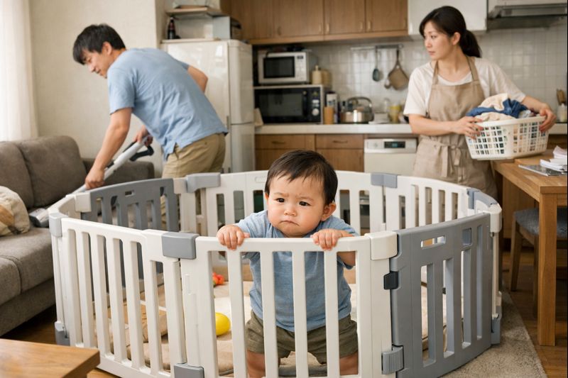 ベビーサークルを使うことで、親は家事をしやすくなる一方、赤ちゃんと同じ空間で過ごす時間が減ったと感じる場合があります。