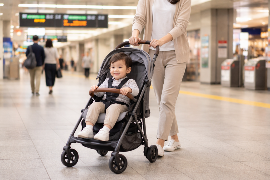 軽くても押しにくいバギーは、長時間の外出で疲れやすくなります。スーパーの通路や駅のホーム、人が多い商業施設をよく使うなら、方向転換のしやすさや段差の越えやすさを見ておきましょう。
