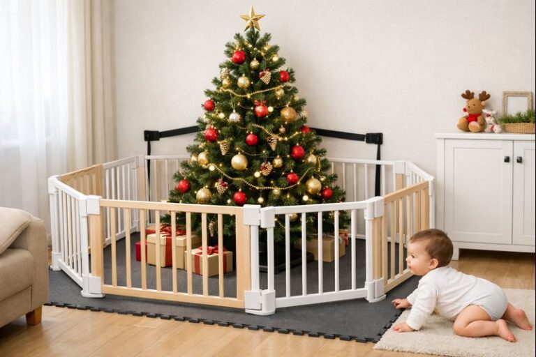 赤ちゃんがいる家庭で、最も効果的とされるクリスマスツリー対策の一つが、ベビーゲートや柵を使った物理的なガードです。
