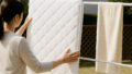 その上にマットを敷き、中央にたるみがないように整えます。マットカバーやシーツを使用する場合は、通気性の良い素材を選ぶと赤ちゃんが快適に過ごせます。