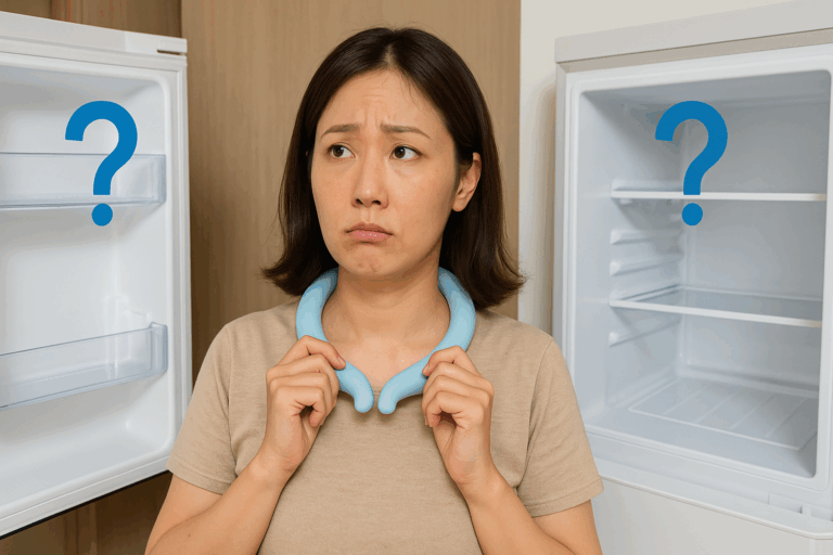 一方、冷蔵庫は約4℃でゆっくり冷却するため、完成までに30〜60分ほどかかります。短時間で強い冷たさが欲しい場合は冷凍庫、肌に優しい冷気が欲しい場合は冷蔵庫が適しています。