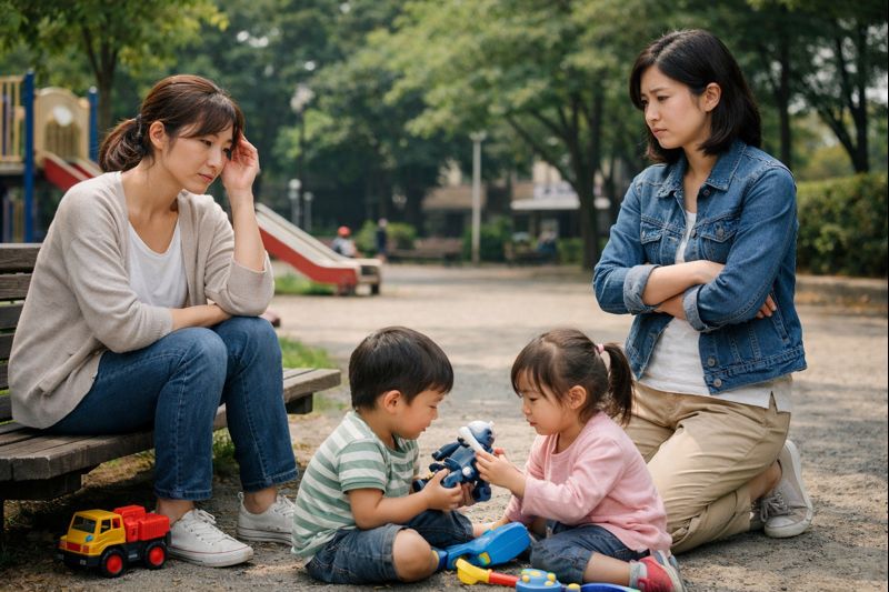 公園やおうち遊びでよく起きるのが、おもちゃをきっかけにした小さなすれ違いです。悪気がないのにモヤモヤが残るのは、親同士で前提が違うまま進んでしまうからです。