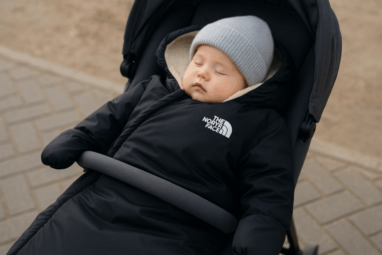 まず挙げられるのは、防寒性の高さと使い勝手の良さです。ノースフェイスならではの撥水性・防風性を備えた素材を使用しており、冷たい風や小雨の日でも赤ちゃんをしっかりと守ります。